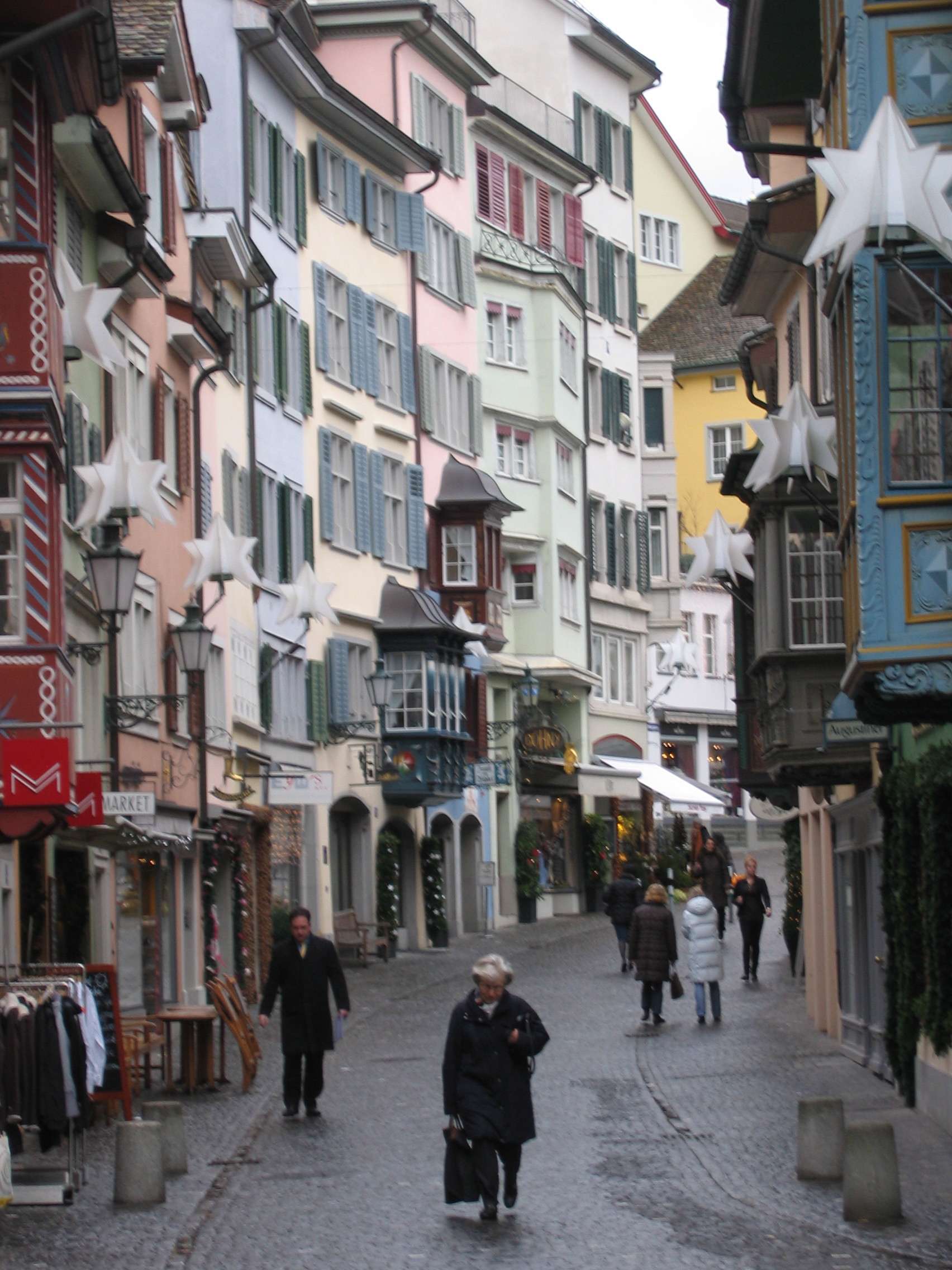The nearby town of Einsiedein has a traditional country Christmas Market with local food stands and homemade sausages, preserves, liquors, crafts and ornament booths that meander down the curved main street for a quarter mile. The smells are intoxicating.