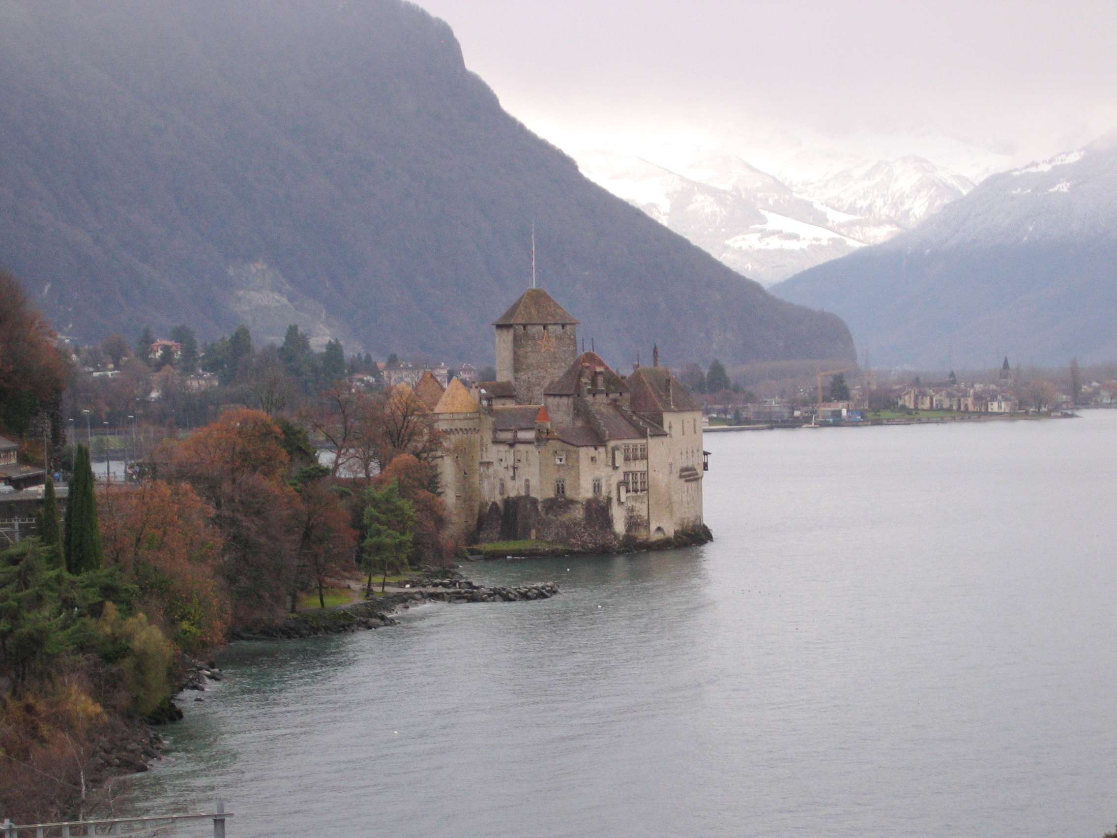 Chateau de Chillon near Montreux and a magnificent view of the Alps